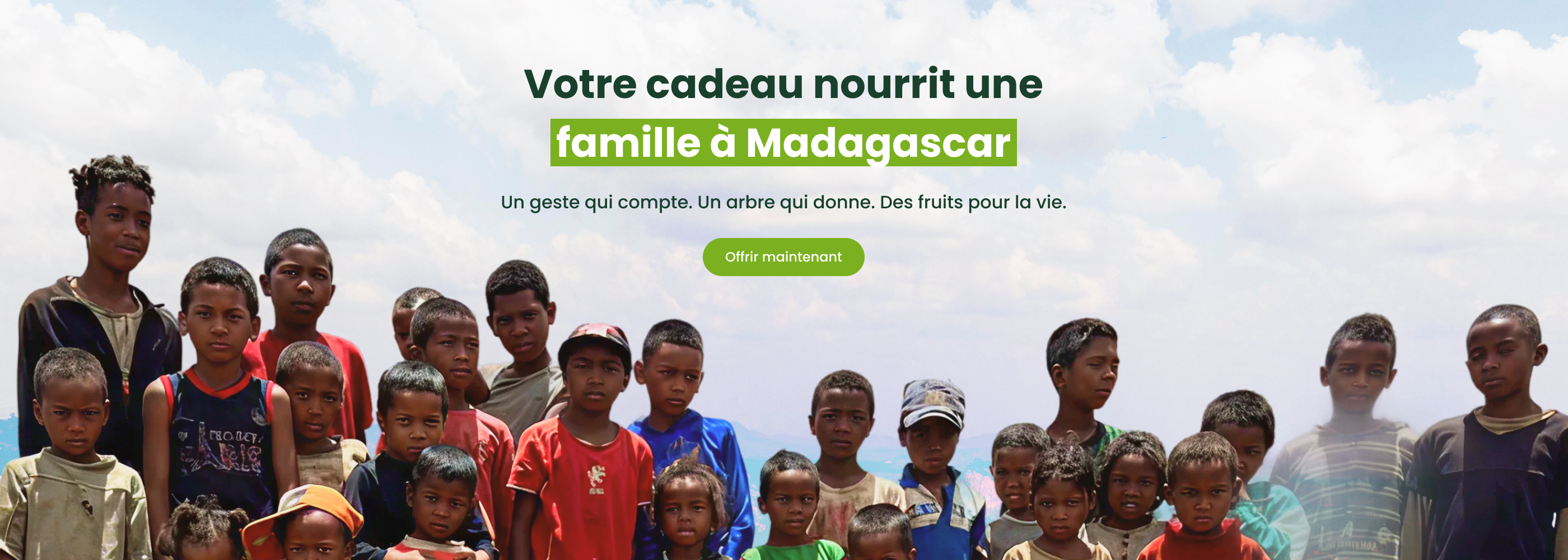 Votre arbre grandit et offre ses fruits aux familles locales, soutenant leur alimentation au quotidien.